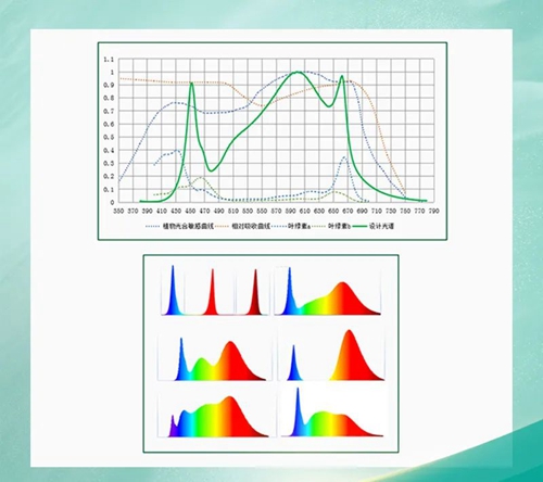 針對不同植物的不同特性,國星光電植物光生物研究實驗室通過研究觀察LED光質光譜、光照方式(光周期、光強度)對果菜、葉菜和高附加值藥用植物的生長生理影響,篩選出高效、節能的植物光譜配方,如: